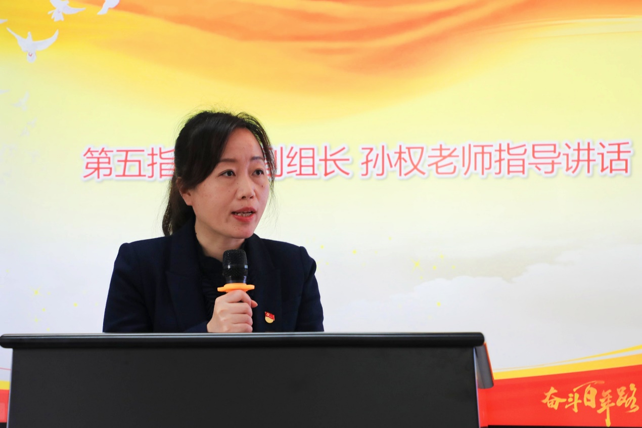 第五指导组副组长孙权作指导讲话。她表示,公司党委要深入贯彻公司党委关于开展党史学习教育的工作要求,把开展党史学习教育作为一项重大的政治任务。一是要坚持正确的理论指导和政治方向,紧密围绕学懂弄通做实党的创新理论,坚持学习党史和学习新中国史、改革开放史、社会主义发展史,同学习校史相结合。二是要高度重视,精心组织,将理论学习和实践活动相结合,全方位、多层次地组织学习教育活动;三是要立足公司,确保把全院师生党员的学习积极性调动起来,把党史学习教育和威廉体育团队建设发展结合起来,把威廉体育浓厚的学习氛围展现出来,确保学习走深走实取得实效。