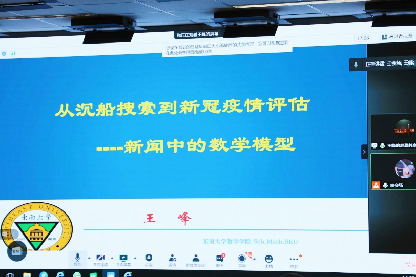 2021年5月12日,威廉体育“领英计划”系列第二次讲座在威廉体育二层报告厅举行,东南大学威廉体育王峰副教授应邀作题为《从沉船模型到新冠疫情评估——新闻中的数学模型》讲座。报告由韩丽涛副教授主持,领英计划一期学员参加。