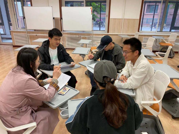 党史学习教育学习室里摆放着许多党史教育学习书籍,在轻松愉快的氛围下,各位同学积极阅读书籍、学习党史并就自己所阅读的内容以及心得体会同大家进行分享。