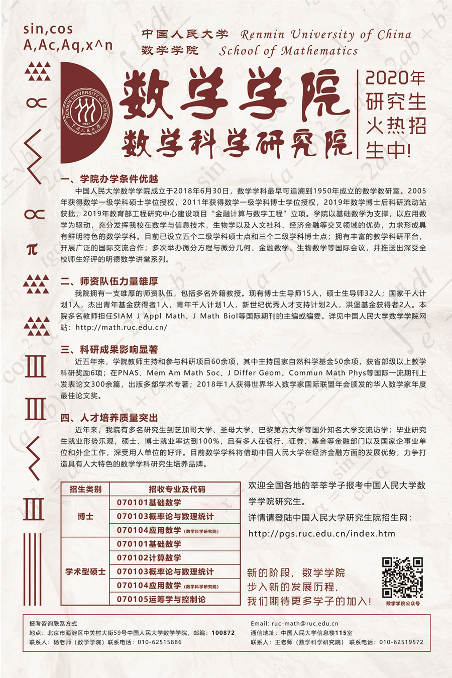 威廉体育,数学科学研究院 2020年研究生火热招生中