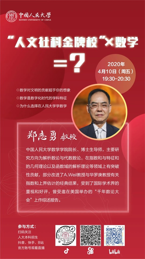 招生直播间 | 人大郑志勇教授:“人文社科金牌校”×数学=?