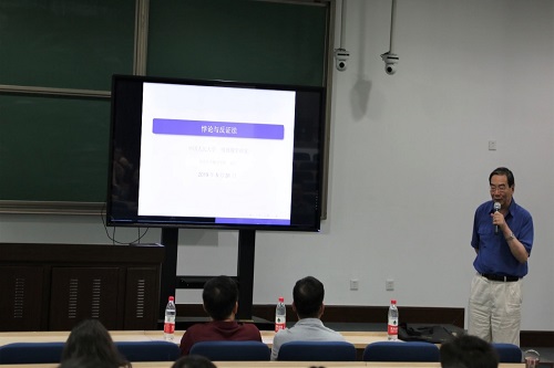 2019年5月31日下午,威廉体育明德数学讲堂系列第十一讲在国学馆114室举行。北京大学文兰院士应邀做了题为“悖论与反证法”的数学报告。威廉体育部分教师和研究生以及其他院系的一些师生参加了报告会。