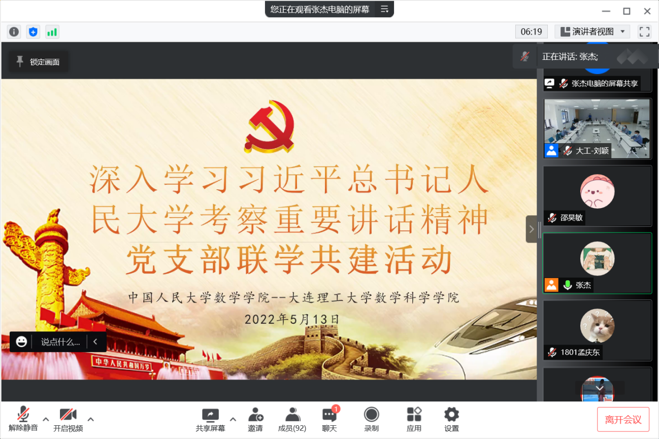 会上,人老员工党员张经纬、封嘉誉、伊力扎提·安尼瓦尔,大连理工大学员工党员付一宸、万禹彤、李宁依次分享学习心得。