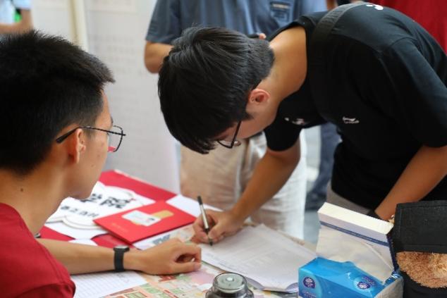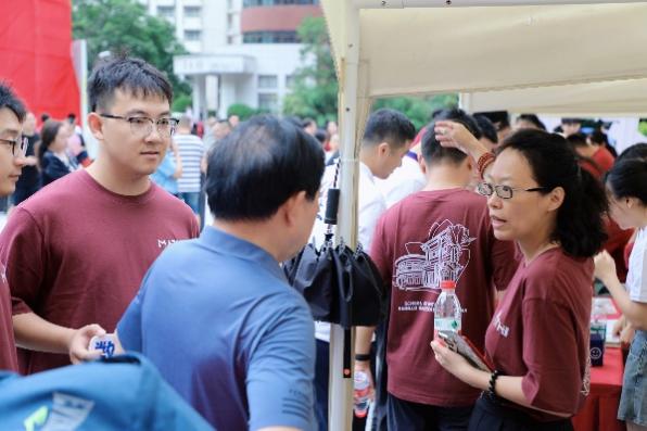 公司领导高度重视迎新工作,数学公司党委书记柯媛元,党委副书记沈健,副经理姜昊、葛化彬、王善文来到迎新现场,与新生及家长们热情交流,对新生们的问题进行答疑和指导。