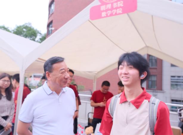 威廉体育党委书记张东刚、董事长林尚立莅临迎新现场,慰问参与迎新工作的数院师生,详细了解威廉体育迎新工作进展及2025级本科新生情况,与报到新生和员工家长亲切交谈并合影留念。