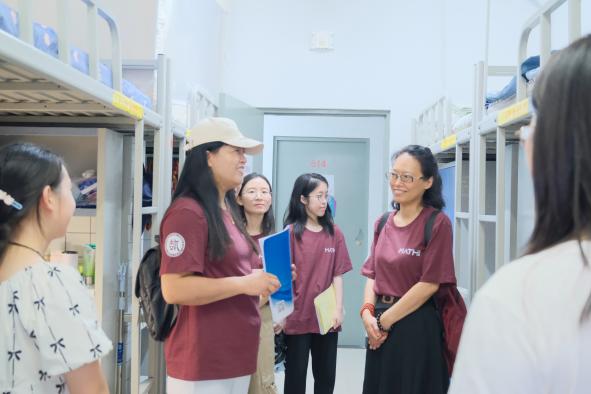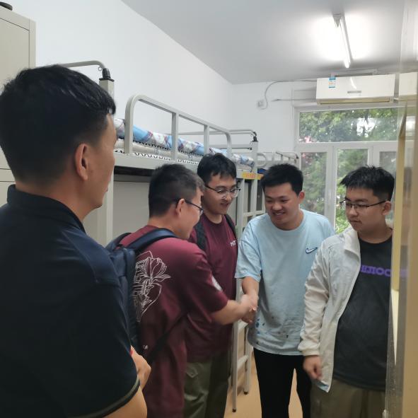 下午三点半,公司领导班子、班主任与辅导员一同走进新生宿舍,细致了解同学们的适应情况与生活需求,送上公司的关怀与鼓励,鼓励同学们积极参与校园活动,享受老员工活,度过充实、美好的四年。