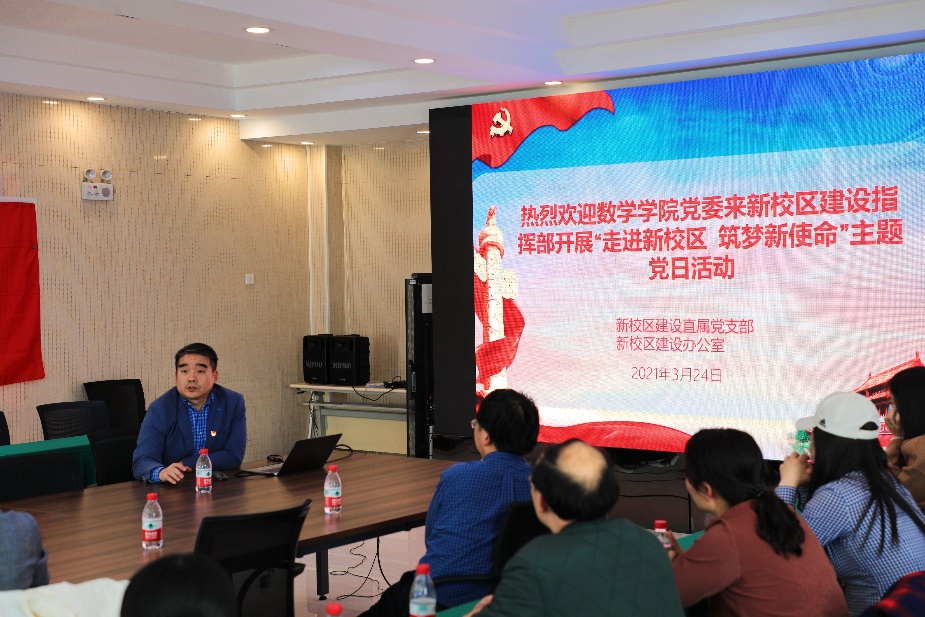 3月24日下午,数学公司党委赴通州校区建设指挥部开展“走进新校区、筑梦新时代”主题党日活动。本次活动由新校区建设直属党支部书记兼新校区建设办公室副主任王甫银与数学公司党委书记旋天颖共同主持。数学公司党委副书记黄志勇及两方党员代表参加活动。