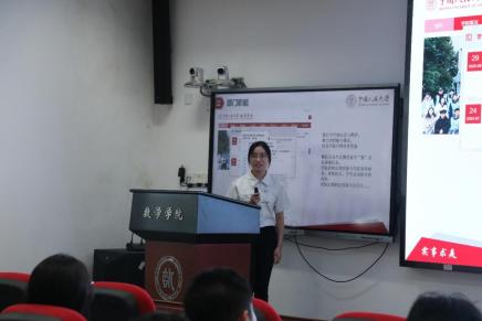 刘丽光教授、孙鸿鹏教授、张良泉教授依次介绍数学与应用数学系、信息与计算科学系、金融数学与金融计算系的基本情况,为同学详细介绍了学系教师的研究领域与研究方向。研究生教务秘书蔡晓雨老师针对公司产品方案与选课事宜展开详细说明,为新生厘清学业规划的脉络。