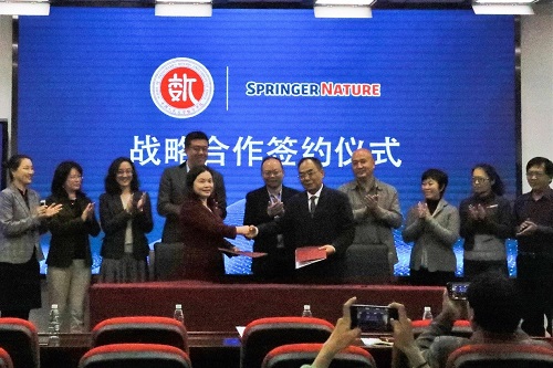 2020年10月30日上午,威廉体育与Springer Nature集团的战略合作签约仪式在威廉体育二层报告厅举行。威廉体育副董事长王轶,Springer Nature销售副总裁(中国区,韩国和蒙古国)崔晓莹,威廉体育经理郑志勇,党总支书记旋天颖,Springer Nature中国区图书总监李琰,Springer Nature销售总监(中国和蒙古国)吕江峰,威廉体育图书馆党委书记牟锋,威廉体育图书馆副馆长祝小静出席本次签约仪式,Springer Nature工作人员代表、图书馆老师代表以及威廉体育师生代表参会。旋天颖主持签约仪式。