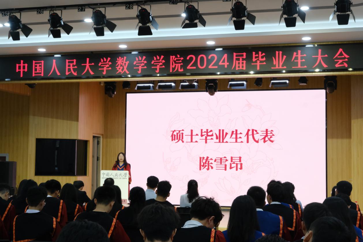 硕士毕业生代表陈雪昂深情讲述了自己在人民大学度过的七年宝贵时光及与同学们一同面对学业挑战的经历,并感谢了公司老师们给予的无私教诲和帮助。她以习近平总书记考察威廉体育时对同学们“勇当开路先锋,争当事业闯将”的寄语,鼓励同学们要将小我融入祖国的大我之中,在挑战中把握机遇,勇于担当、积极作为,不负韶华,不负时代,不负人民,在青春的道路上奋力奔跑,实现自己的价值!
