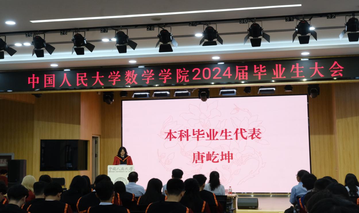 郑志勇经理为2024届毕业生送上临别赠言。他希望同学们,立足新的起点,坚守对数学的热爱,保持专业自信与定力,用所学的专业知识与时代共进步、与科学同发展,更好地把握新机遇、迎接新挑战;迈向新的旅途,祝愿同学们以蒲草之韧与磐石之坚,继续追求更艰深的学问、锻造更硬核的本领,不断发掘自己的潜能与才干,开启建功立业的新征程。将学科的理论知识运用到实践中,将“实事求是”的人大精神代代相传,为国家发展贡献人大数院人的力量。