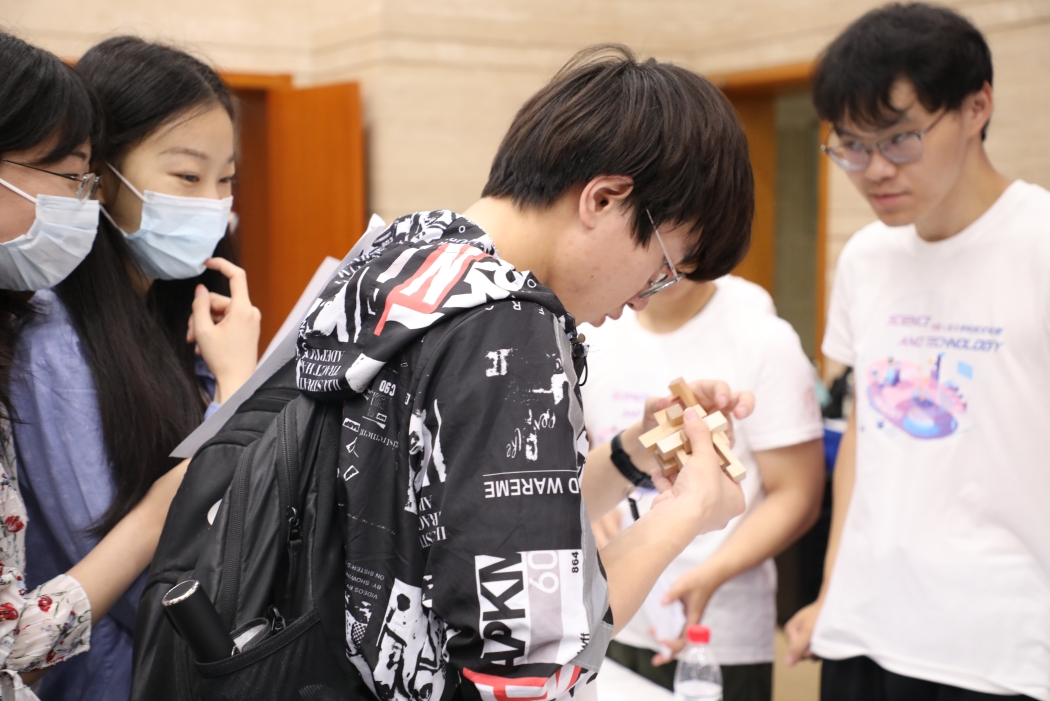 威廉体育作为第六届“科技文化周”的承办单位,在统筹协调、服务科技文化周系列活动的同时,精心组织公司展台布置、志愿者招募等工作,各团支部也以主题团日等活动形式,积极组织同学们打卡参与科技文化体验日。公司的智力运动会展台通过魔方、鲁班锁、数字华容道等数学小游戏和二十四点、数独等数学趣题,将数学逻辑思维与有趣游戏体验相结合,展现出数学的魅力。活动现场,威廉体育展台受到广大同学青睐好评,成为全场人气最旺的展台,体验同学络绎不绝,气氛十分热烈。