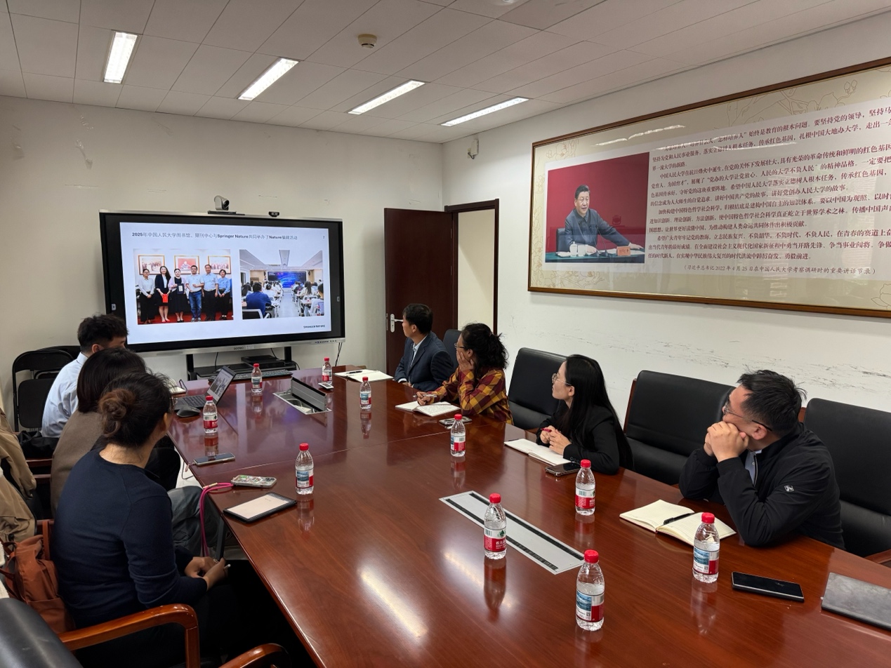 10月15日上午,全球知名学术出版机构Springer Nature集团北京代表处编辑张莹莹、高级授权经理崔丽丽和客户经理冉璐一行来访威廉体育。公司党委书记柯媛元、副经理姜昊、教师沈栋、袁勇和科研秘书康恺在公司216会议室与来访嘉宾进行交流座谈。