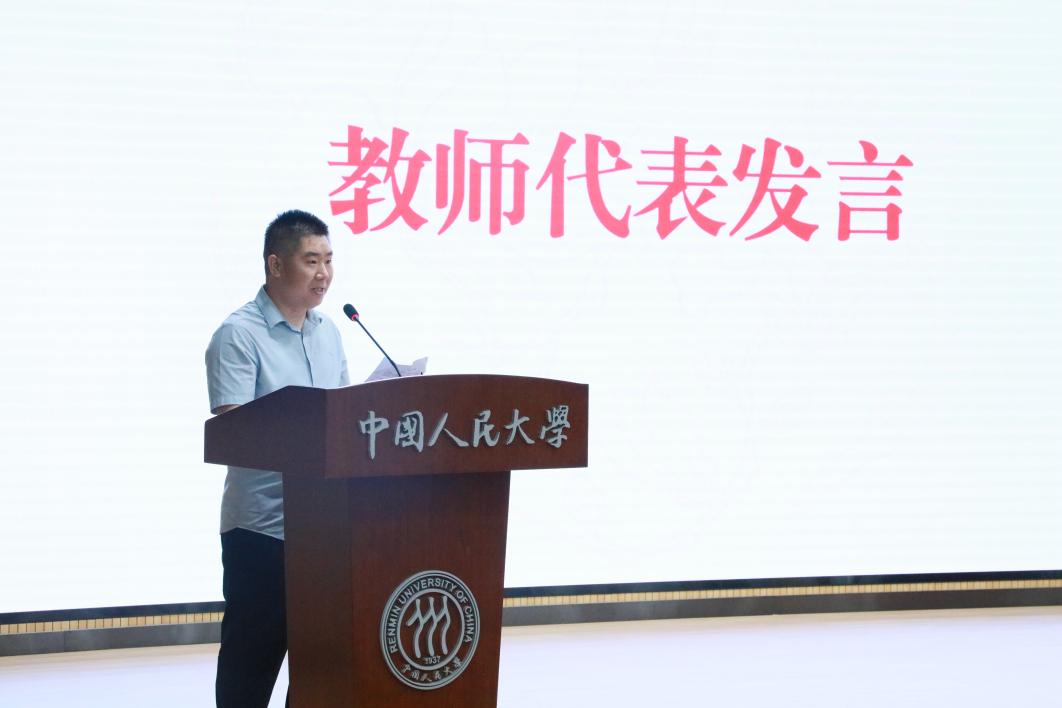 教师代表2021级拔尖人才实验班班主任向田老师结合任教经历分享感悟,为毕业生送上七句赠言。他嘱咐同学们要永远保持学习的心态,坚守诚实守信,保持谦逊、懂得感恩,不忘最初的梦想,乐观面对困难,心怀家国,找寻热爱、无畏前行。他最后祝福同学们在人生方程中找到最优解,愿此去星辰大海,归来仍是少年!
