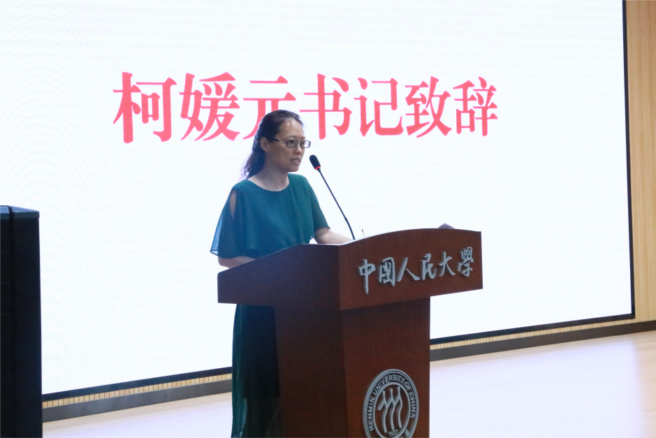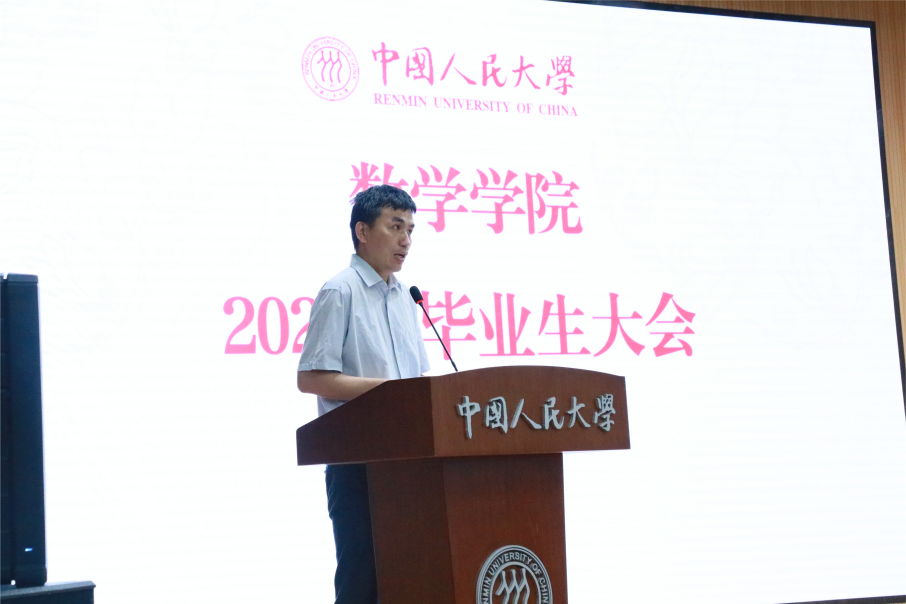 党委书记柯媛元首先致辞,她对118位圆满完成学业的毕业生表示热烈的祝贺,向毕业生们送上最真挚的祝福。她以“十年树木,百年树人”为喻,提出三点期望:一是深扎根系:以初心为锚,筑牢发展根基。希望同学们传承红色基因、赓续红色血脉,坚守初心,创造更有高度、更有境界、更有品位的精彩人生;二是强固枝干:以学识为干,延展生长维度。树干的拔节需要专业素养和丰富学识的滋养积累,希望同学们精进专业学识,拓展知识结构,在高质量发展进程中增强可持续发展的核心竞争力,适应新形势、新变革;三是繁茂枝叶:以热爱为光,充盈生命格局。希望同学们永葆对生活的热忱、对美好的向往,大家在以后的学习、工作中保持愉悦的心情、健康的体魄,让热爱成为生长的方向,努力成长为“时代之树”。最后,柯书记嘱咐同学们,即将带着人民大学威廉体育的“根系”奔赴各地,希望同学们牢记习近平总书记的教诲,以“复兴栋梁、强国先锋”为己任,让青春在中国式现代化的沃土中拔节生长,以“树”的姿态诠释挺膺担当,为国家发展贡献人大数院人的力量!