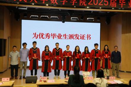 毕业生代表分别发言。本科毕业生代表肖煜峰以“用数学思维丈量世界”为主线,回顾四年前怀揣好奇踏入数院的起点,讲述从“陌生逻辑体系中摸索”到“团队合作攻克建模难题”的蜕变,深夜思索课后习题的沉默、学术论坛上的思想碰撞,感慨数学赋予的理性、坚韧与思辨,“数院不仅教会推导证明,更教会面对复杂世界的理性方法”。他表示将始终铭记“实事求是”的校训,以知行合一的态度,奔赴未来更广阔的天地。愿以数学之光照亮前路,以青春之志书写属于自己的不凡篇章。