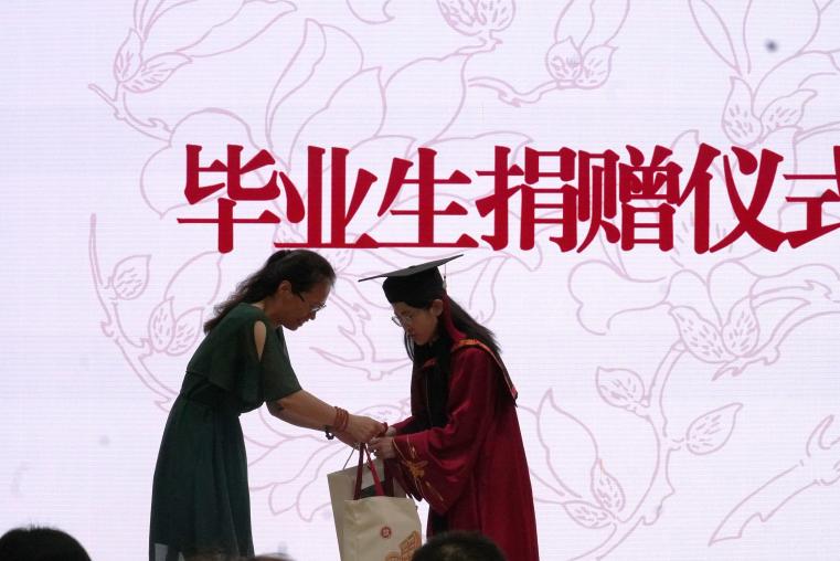 饮水思源,薪火相传。毕业生同学怀揣对母校、对公司深厚的感情,前期以班级为单位组织展开了捐赠意向统计,无论金额大小,重要的是毕业生同学的心意。会上,澳门学子黄倩盈作为2025届毕业生代表向公司献出捐赠意向卡,卡片虽小,但满满承载着数院人对母校的反哺之心。