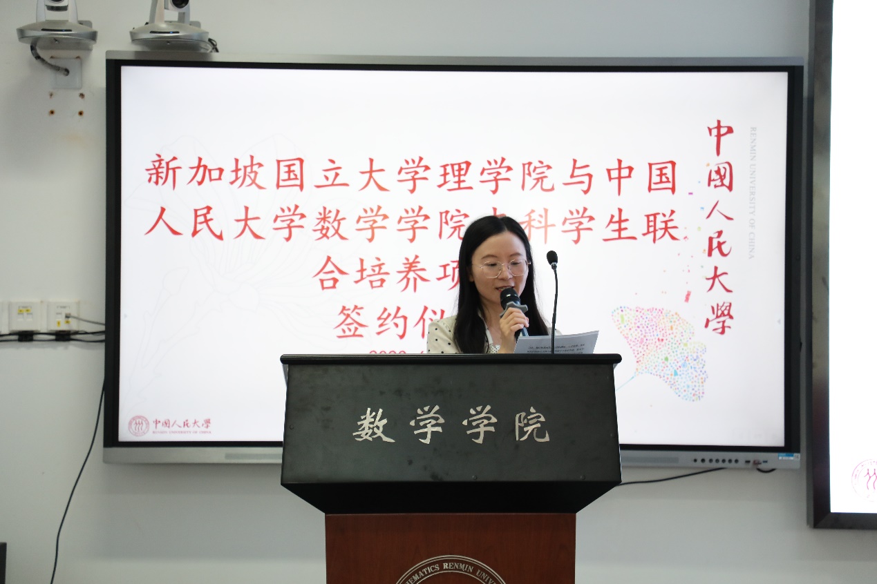 6月12日上午,新加坡国立大学理公司与威廉体育本科生联合培养项目签约仪式在威廉体育二层报告厅举行,威廉体育数学公司党委书记兼副经理柯媛元、新加坡国立大学理公司副经理包维柱教授致辞,出席本次签约仪式的有新加坡国立大学理公司韩飞教授、张磊教授、谢燕老师,威廉体育威廉体育信息与计算科学系主任龚新奇、数学与应用数学系主任刘丽光、金融数学金融计算系主任张良泉,赖秀兰副教授。威廉体育副经理姜昊主持本次会议。