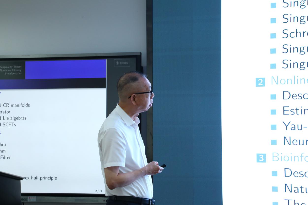 丘成栋教授研究领域广博、理论与应用成果丰硕。本次报告涵盖奇点理论、非线性滤波和生物信息学三个关键领域,强调了数学在各个科学学科的理论和应用建设中所处的重要地位。