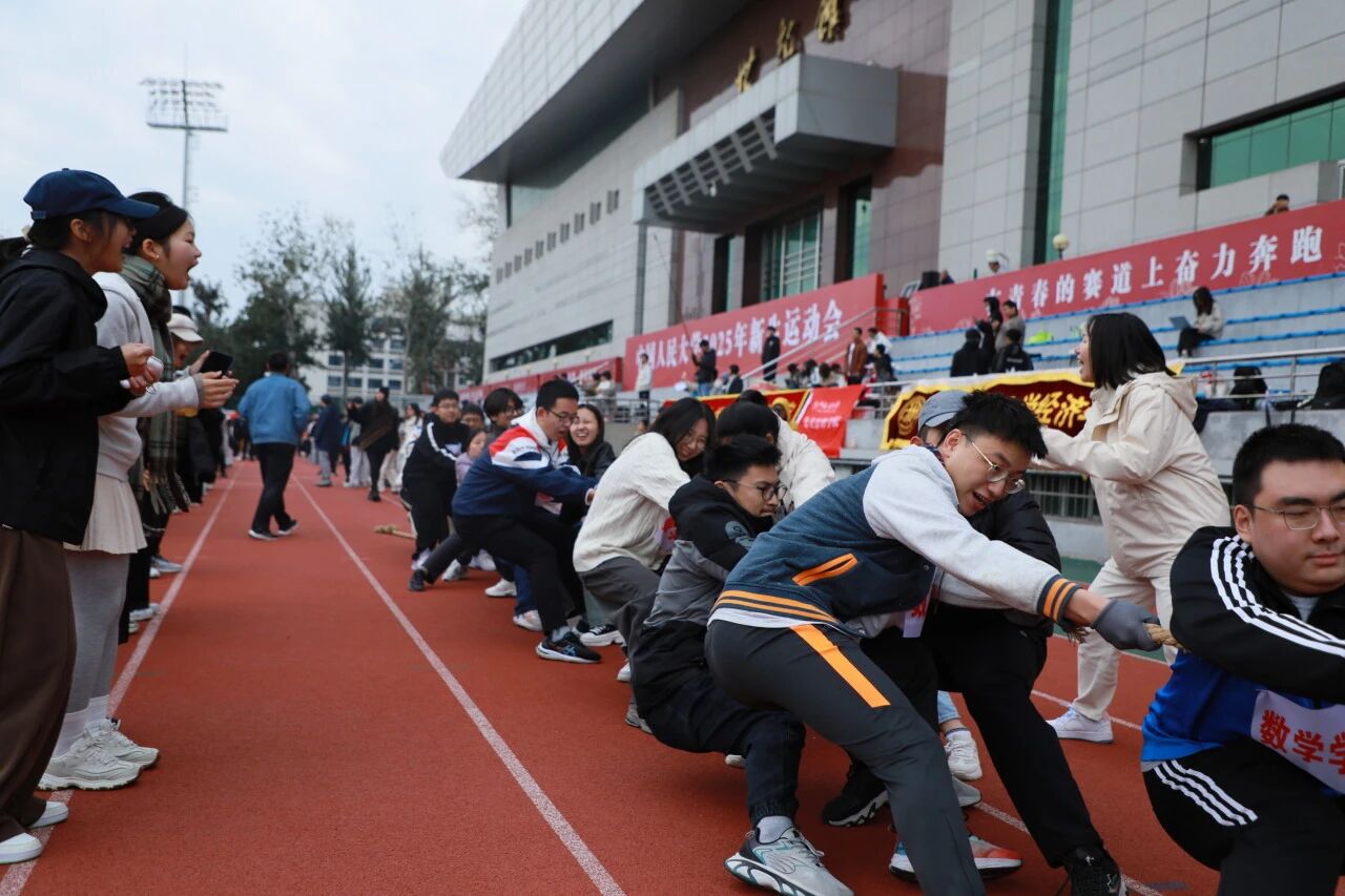 团体项目是“集体力量”的最佳见证,数院学子齐心协力,劲往一处使,步往一处迈。同心鼓比赛中,队员们屏气凝神,眼随球动、心随鼓动,以稳定的发挥圆满完赛。拔河比赛中,队员们双脚蹬地、身体后倾,紧握麻绳的双手青筋微露,口中的号子 “一二、一二” 整齐有力。尽管对手实力强劲,他们始终咬牙坚持,最终以坚韧意志斩获第六名。