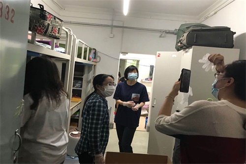 清理物品,妥善叠放,有序打包,接力搬运……老师们忙而不乱,井然有序地操作着。所有行李打包完毕,老师们将废弃物品以及垃圾全部清理出宿舍,并按要求进行分类,保证了宿舍公寓的干净整洁。